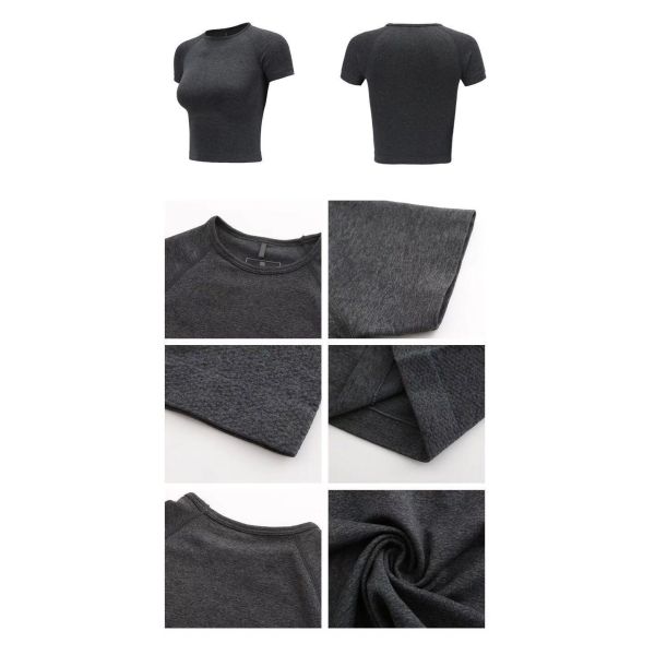 T3137 Women's Yoga Outfit Seamless Workout Exercise Sport Crop short sleeve Gym top